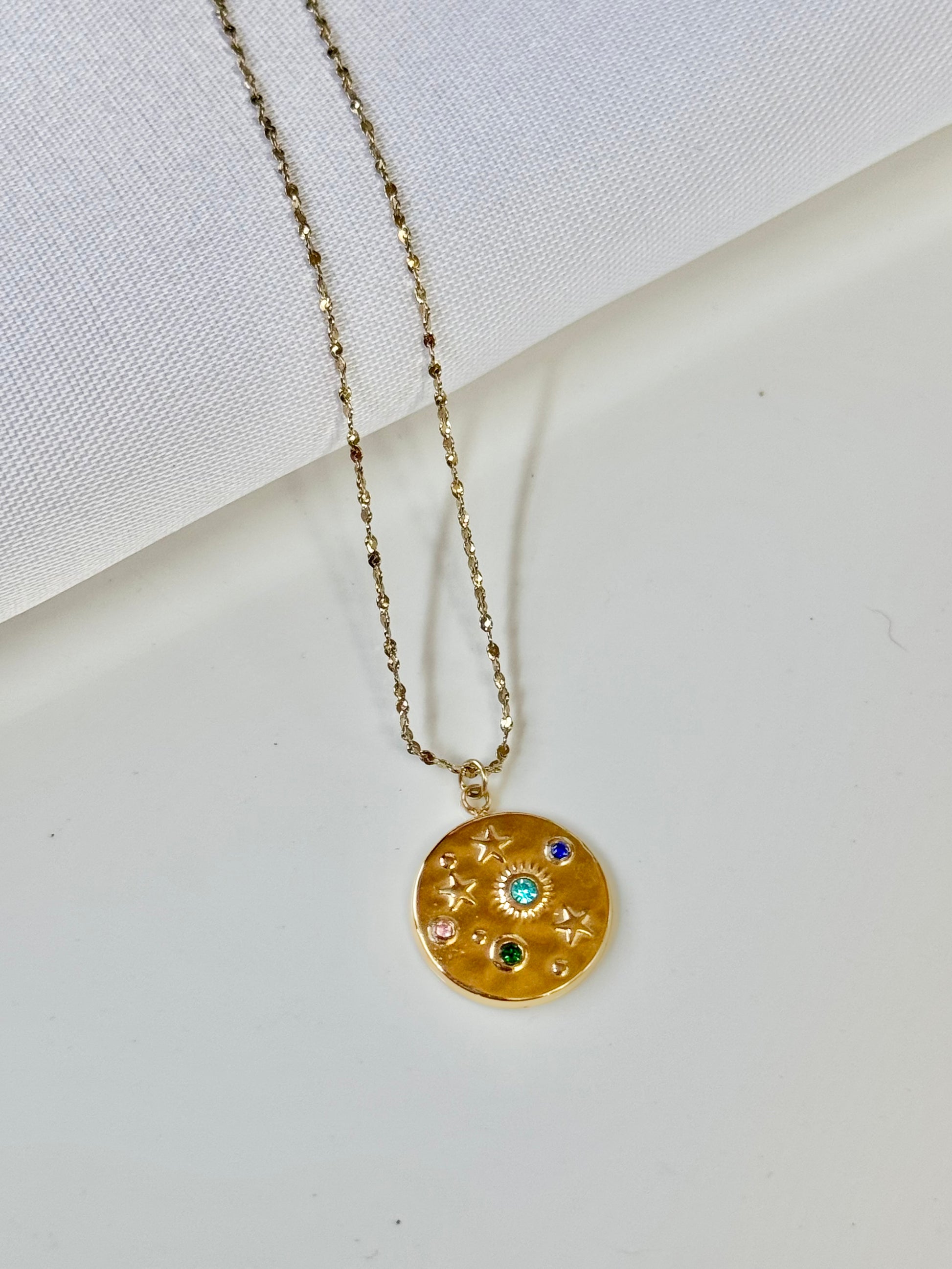 Boho Celestial Charm Necklace – Stainless Steel Star Coin Pendant