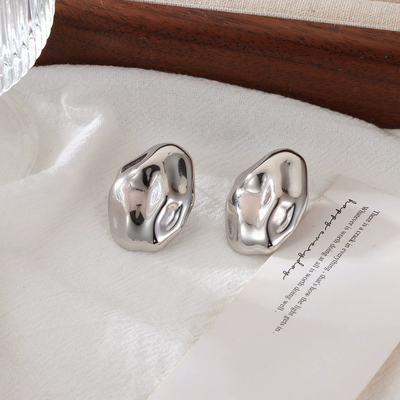 Perfectly imperfect. These organic, hammered studs look like liquid gold frozen in motion. The irregular texture creates dimension and catches light in unexpected ways—sculptural, bold, and effortlessly cool. A statement piece that feels like wearable art.